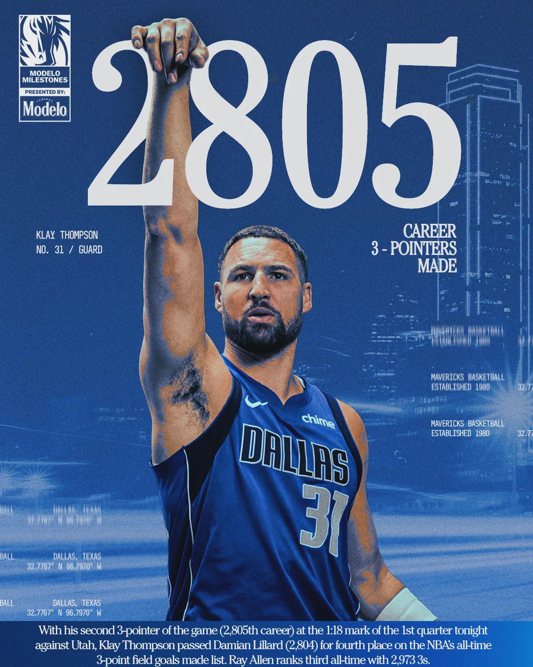 当然,克莱也没忘记感谢那些前辈:“父亲教会我要尊重前辈。没有雷吉-米勒和雷-阿伦,就没有今天的我。在我十几岁时,就痴迷地研究他们的比赛,包括无球跑位和命中关键球的能力。能和他们一起出现在这个榜单,很不真实。”